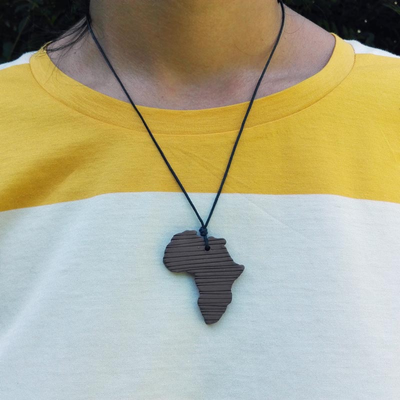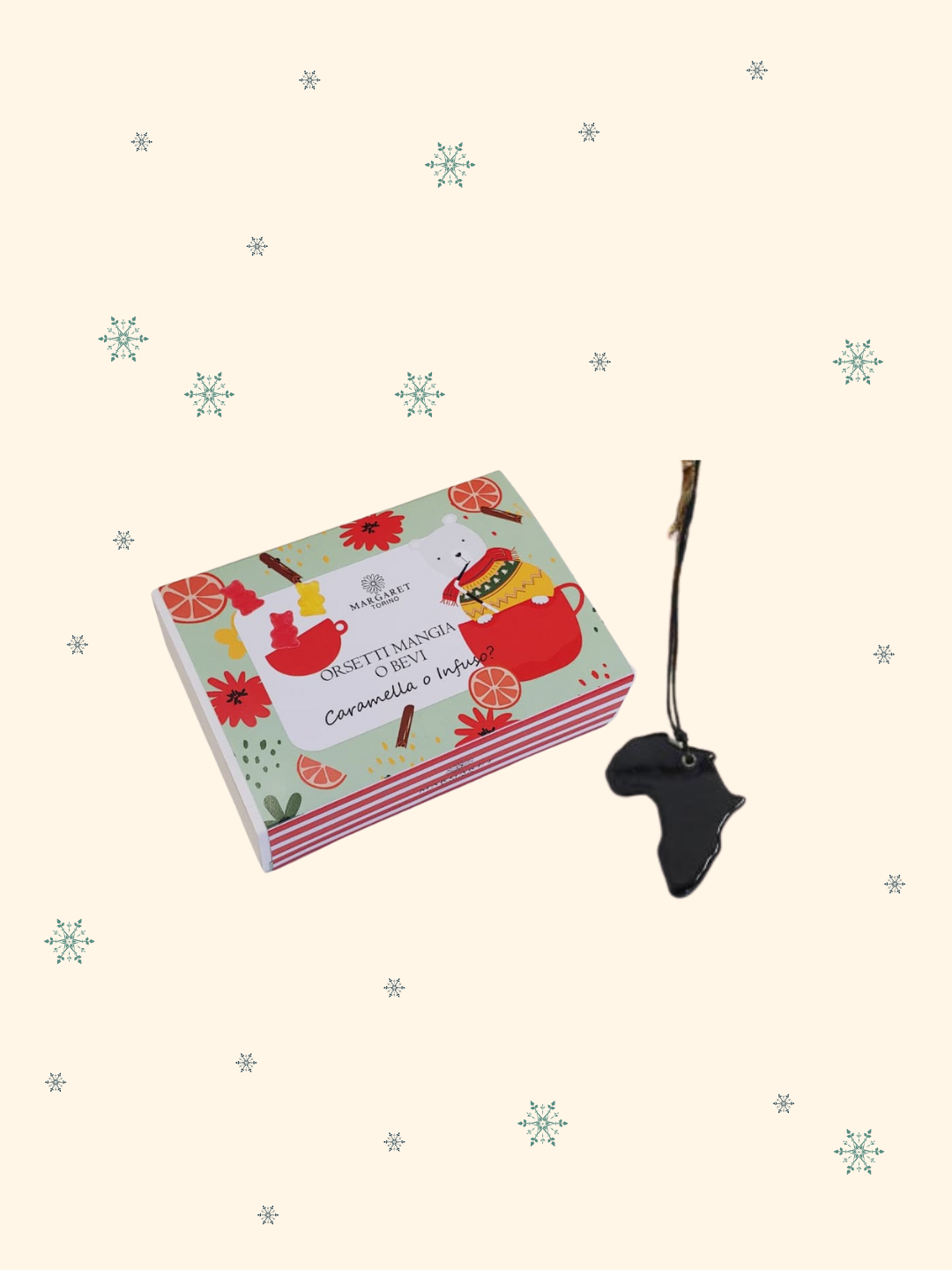 Confezione con gelatine a forma di orsetti al gusto arancia e cannella e frutti rossi + collana con ciondolo Africa in ceramica.